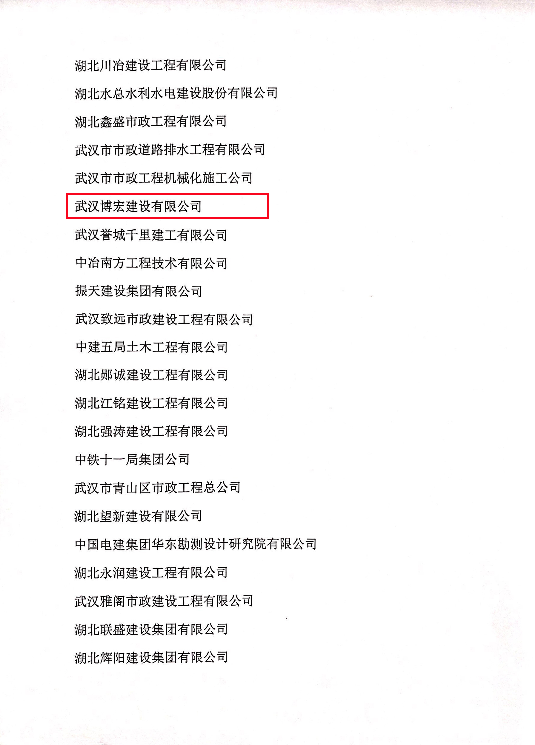 6月2日,湖北省市政行業(yè)協(xié)會發(fā)文表彰,授予博宏建設(shè)“湖北省市政行業(yè)抗擊疫情突出貢獻(xiàn)單位”榮譽(yù)稱號。