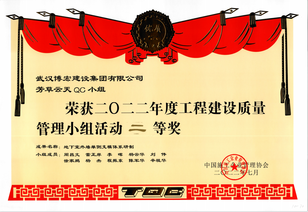 近年來(lái),公司成立了多個(gè)QC小組,積極參與公司技術(shù)研發(fā)工作,以技術(shù)創(chuàng)新提升市場(chǎng)核心競(jìng)爭(zhēng)力,努力打造新的增長(zhǎng)極。目前,我司的QC小組課題始終堅(jiān)持問(wèn)題導(dǎo)向原則,緊扣技術(shù)創(chuàng)新、施工生產(chǎn)、質(zhì)量管理等重點(diǎn)、難點(diǎn)問(wèn)題,積極開(kāi)展QC小組攻關(guān),并參與各級(jí)協(xié)會(huì)組織的QC競(jìng)賽活動(dòng),獲得省I類成果9項(xiàng)、II類成果5項(xiàng)、III類成果4項(xiàng),其中1項(xiàng)成果榮獲武漢建筑業(yè)協(xié)會(huì)QC銀獎(jiǎng)。