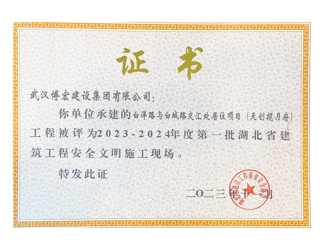 此次,公司8項工程獲此殊榮,是對博宏建設集團品牌實力的認證,更是鞭策博宏人載譽前行的動力。未來,博宏建設集團將繼續高標準、嚴要求做好安全文明工作,不斷提升安全文明施工標準化水平,打造更多優質工程、放心工程、精品工程,為公司高質量發展提供堅實保障,為拓展城市幸福空間作出積極貢獻!