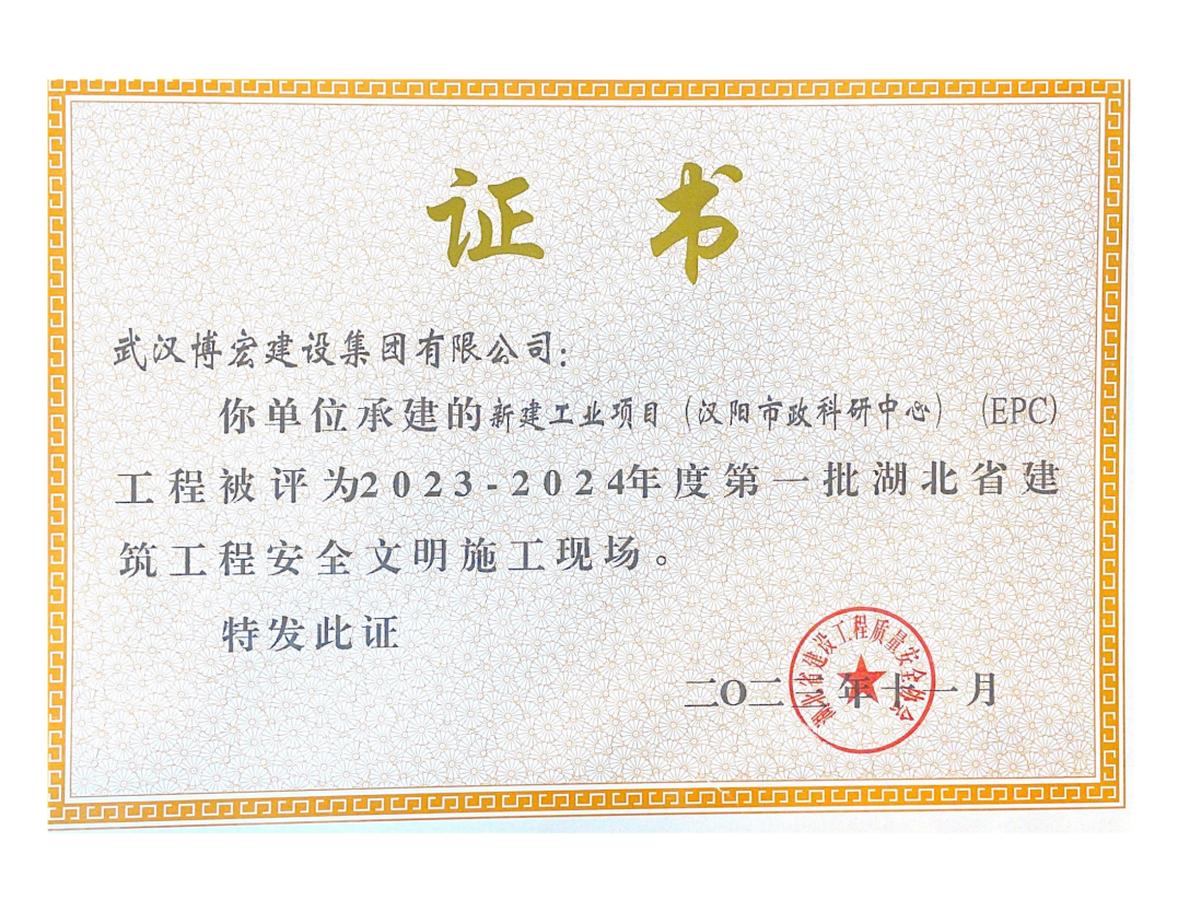喜報!博宏建設集團8項工程斬獲“湖北省建筑工程安全文明施工現場”
